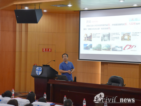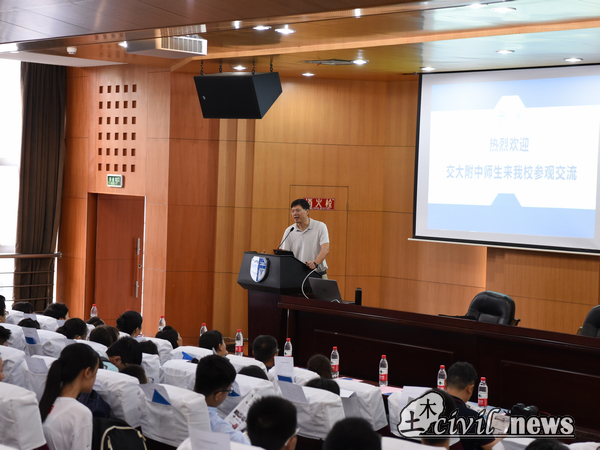 随后,三组队伍来到图书馆二号报告厅,在主讲人土木工程公司党委李锦红副书记、jn江南桥梁系何畏副教授的介绍下,一一领略交大土木的风采。李书记热情欢迎同学们的到来,并向大家介绍了交大的校历与土木学院的院情,让大家深入了解到交大的精神文化与办学特色。何教授为同学们阐述了交大的渊源与发展。交大因铁路而诞生,伴随着铁路的发展而成长,122年始终秉持“灌输文化尚交通”的历史使命。