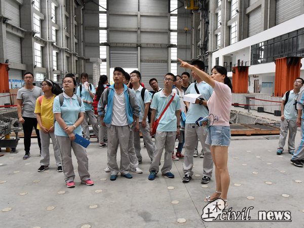 上午行程结束后,大家来到风华苑用餐,并进行休息。午休后,他们来到陆地交通地质灾害防治技术国家工程实验室进行参观。在这里,附中师生们参观了抗震试验大厅、现代化的钢轨、高性能轻型预制组合梁模型试验设备、混凝土疲劳性试验装置等一系列大型高科技实验设备,增强了同学们对于土木工程专业的兴趣和认识。