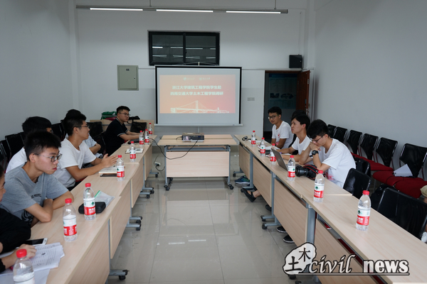 接下来,两校师生共同观看了公司“科技月”宣传视频。一件件模型,是制作人的心血;一场场比赛,代表着科创人的努力与坚持。“科技月”孕育了许多奇思妙想,见证了无数土木学子的成长。浙大师生被公司“科技月”丰富的赛事和有序的组织所震撼并给予慷慨的掌声。观看完视频后,两校就竞赛经历、经验方面做出分享和交流。