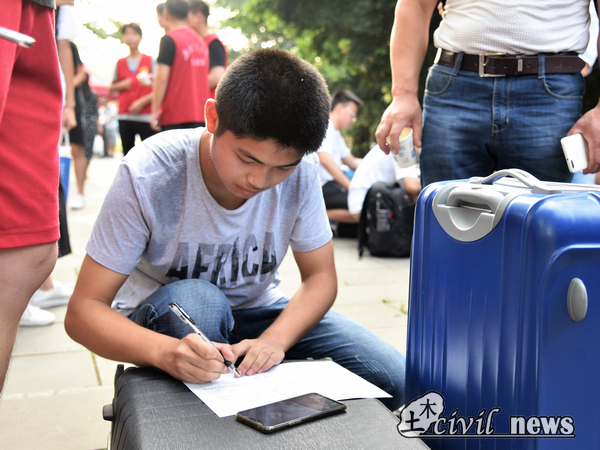 天佑斋17号楼是男生居住的地方,与其他新生不同,默默打扫着地面的刘同学并没有父母的陪伴,他一个人拖着行李箱,独立完成了报道手续。记者了解到,他是从湖南一个人乘火车来学校的。“以前上学我是自己一个人去,这次我也可以一个人来大学。再说,其实我并不是一个人,我有好多湖南老乡学长学姐的帮忙,虽然离家很远,都是我却依然能感觉到家的温暖。”谈到自己的专业,他说,父亲和哥哥都从事土木工程这一方向,于是他从小就立志成为一名土木人,能在江南体育官方网站土木专业就读,他感到很荣幸,距离自己的梦想又进了一大步。