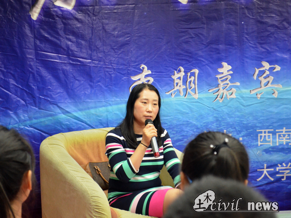 此后,任教授详细地介绍了道路与铁道工程方向的具体工作及研究方向。在谈及女生学习土木工程专业是否会不合适或者有劣势时,任教授谈起了她本科时期的一件事,她也向当时的董事长提出了这样一个问题,而当时的董事长回答她:“优秀的女生更容易找工作,只要强大自己,就可以突破专业的限制”。