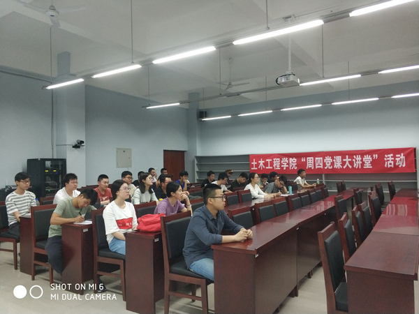 2018年5月3日14:00,由土木学院犀浦校区员工党总支主办、土木员工第一、二党支部承办的党员系列教育活动——“周四党课大讲堂”第四讲开讲。第四讲课程的主要内容是对“如何以十九大精神指引高等教育法治建设”进行解读与分析。与会同学认真观看了教育部学位管理与研究生教育司副司长周佑勇的视频。
