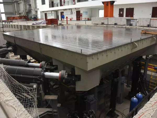 王老师介绍,该实验室中的地震模拟振动台主台系统台面尺寸为8×10m,负载能力为160t,为国内最大,世界第二的地震模拟振动台。该地震模拟振动台大幅提升了我国桥梁与隧道、岩土工程、结构工程的试验能力,使西南交大的抗震试验平台处于国际领先水平。