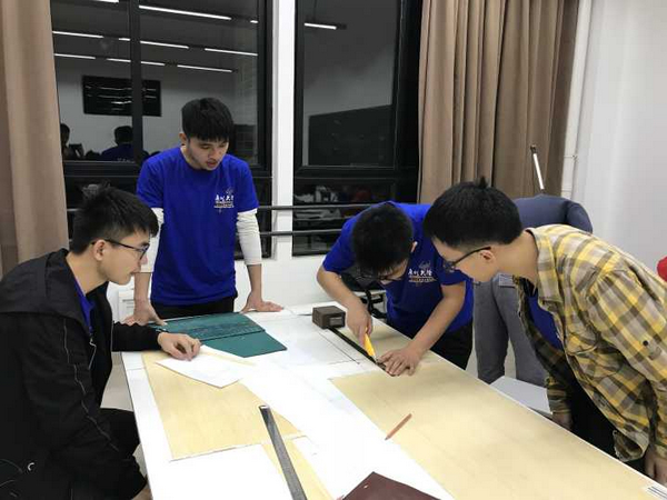 访学团成员从最开始的杆件制作学起,在交大同学的帮助下完成大致框架,最后进行整改。仅仅历时两个夜晚加一个下午,在江南体育官方网站科创中心三位同学的指导下最终赶在截止时间之前上交了作品。