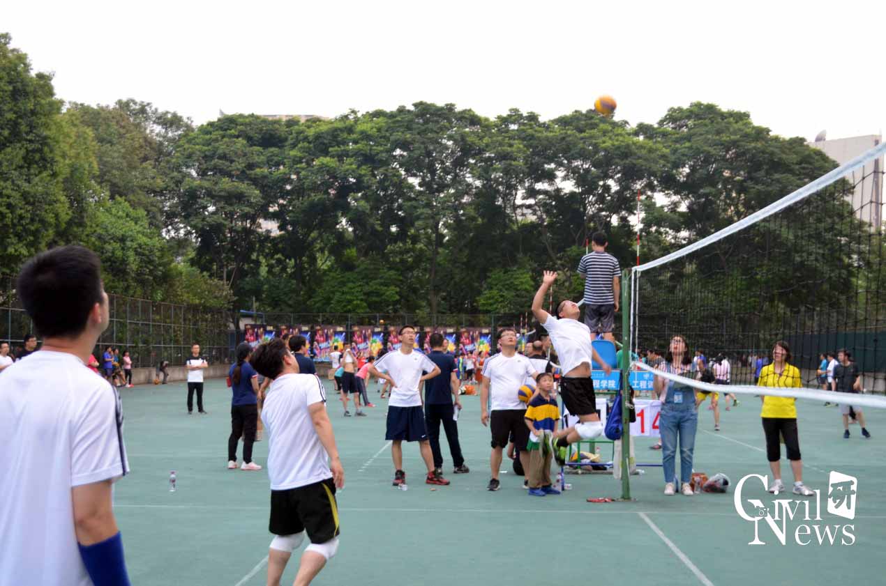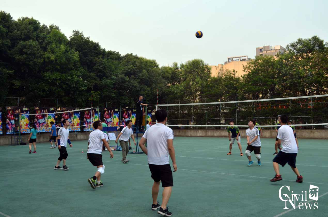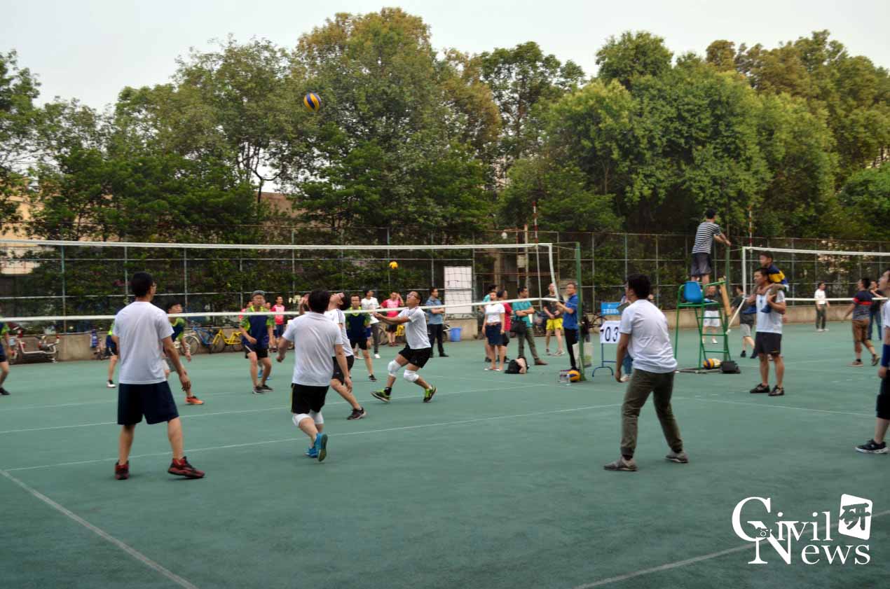 比赛进行到最后一场。公司教师一个扣杀拿到开场球,士气倍增,各位老师各施绝招,频频得分,开场十分钟,就将比分打到13:6,公司教师愈战愈强,观众欢呼不已。工程训练中心严防死守、奋力追击,最终不敌公司。最后,公司教师凭借精湛的球技与扎实的功底以15:7拿下第三局。