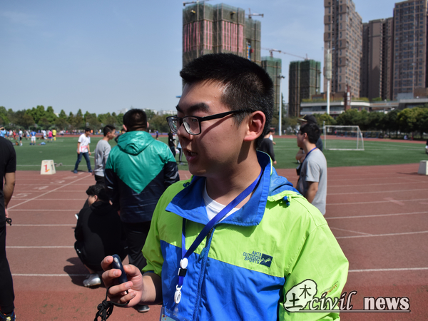 记者还采访到程代旭同学,程同学在这次赛场上主要是负责男子四百米的计时工作。作为计时员,专心致志和严谨负责的态度是基本素养。“开始计时的时候会鸣枪示意,这时要看烟不听声,光速要比声速快,这样计时才准确。到终点的时候也是要等运动员踩线再计时,这些环节少了任何一个都会造成误差”,同时他还谈到:“有时因为赛程较长,每次比赛的时间间隔较大,会有些闲散人员在赛道上四处走动,影响计时员视线而导致计时有误甚至出现漏计和错计的情况。”