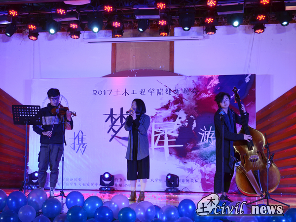 翩翩舞步中,踏出的是土木学子的青春火花。第一个节目是由新闻中心及ASCE协会带来的歌舞剧——《Summer Night》,活泼愉悦的歌声中,舞者们面含春风,尽情享受着台上的每一秒钟,她们的活力感染了台下的每一个观众。