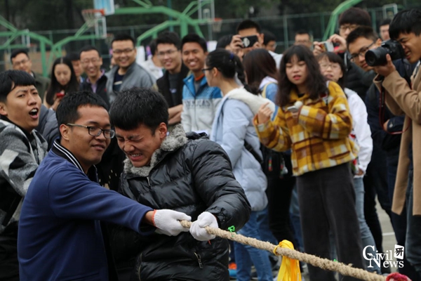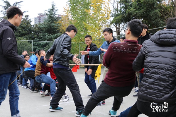 11月20日中午12点30分,jn江南2017级研究生拔河比赛正式开始。此次大赛以促进各班级间交流为宗旨,丰富员工们的课余生活为目的,用比赛的形式为员工们提供了展现各班风采的机会。通过比赛发扬了团队精神,增强了同学们之间的凝聚力。