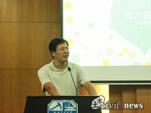 9月20日下午两点半,在图书馆二号报告厅举行了题为“当你们成为我们”的关于职业素质与职业规划的讲座。本次讲座的主讲人为中国建筑一局有限公司人力资源部副总经理张昊,主持人为土木公司党委副书记李锦红,邀请的嘉宾有2014级辅导员黄雪娇,2016级辅导员巨云华以及中建一局子公司的部长和经理们。