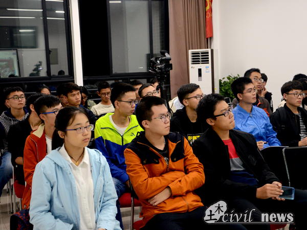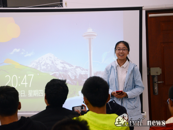 在此次活动中,陶柯免同学以目标为工作与考研为主线,通过学校竞赛、员工工作以及生活三个方面为新生做了报告。会议开始他便引用其助辅的一句话“大学里,学习不是唯一,但一定是第一”作为起始,紧接着便提出效率与自觉两个重要概念,然后围绕这两个重要概念,进一步叙说了去图书馆以及自习的重要性。陶柯免同学列举了几个重要学科,并以英语与土木工程制图两个学科为例子,介绍了自己的一些学习方法与经历。