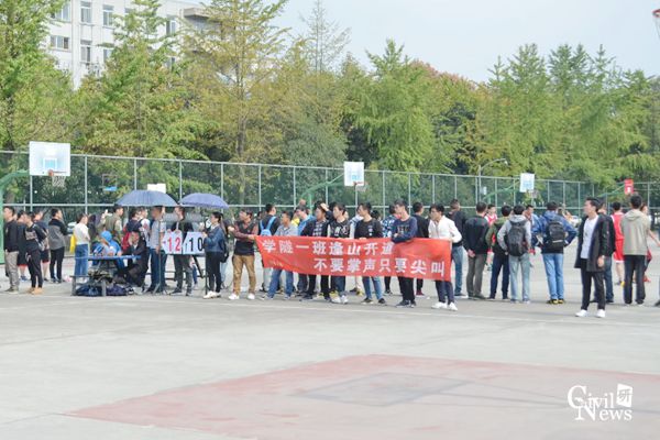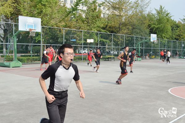 10月23日中午12点30分,土木学院班级篮球赛的淘汰赛拉开了帷幕,成都的天气也随之放晴,久违的太阳也来围观这场比赛。