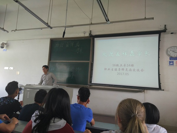 在进行自我介绍后,也请同学们也分别介绍自己。在这之后也积极为同学们解答职业生涯的困惑,如目前土木工程专业的就业前景,以及该专业在前几年和将来的发展。还有在国内与国际的发展前景。除此之外,也介绍了设计院与施工单位在工作强度、工作薪资等方面的区别,施工单位可能会有更多的时间要花在出差上,在一个固定的地方呆的时间会相对来说比较少,而设计院的奔波可能就会少一点,所以在未来的职业选择上要做好心理准备。更深入的甚至谈到了涉及未来比较现实的择偶和家庭问题等等。