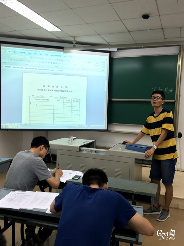 接下来,他简单的介绍研究生晚归管理制度和晚归备案制度,告知同学们认真对待晚归制度,加强安全意识,增强自身的自律意识、做到自觉遵守学校的规章制度。加强时间观念,合理安排时间,外出时尽量按时归校,尽量减少晚上外出频率。顺便,他讲述了关于研究生参加学术报告专题讲座的事情。