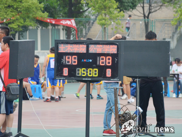 6月9日下午5点50分,“华沐杯”篮球赛中的第四轮A组,土木学院对阵公管学院的比赛在北区篮球场正式开始。