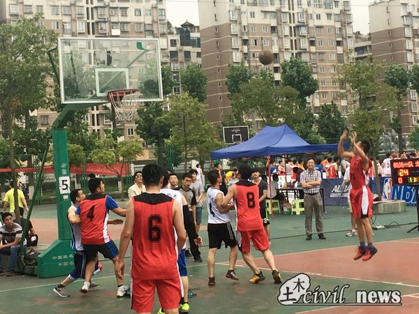 6月14日下午,“华沐杯”教职工篮球淘汰赛在北区篮球场如火如荼地进行。本次比赛的双方分别是jn江南和机关一队。