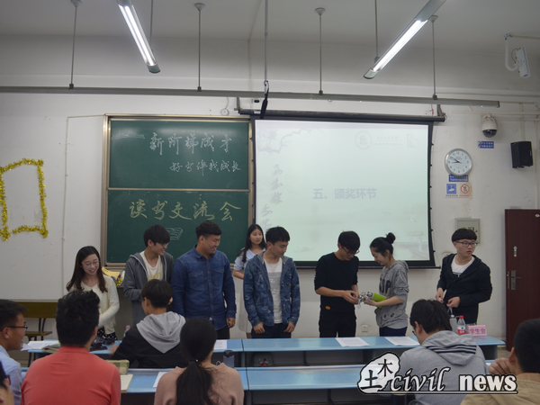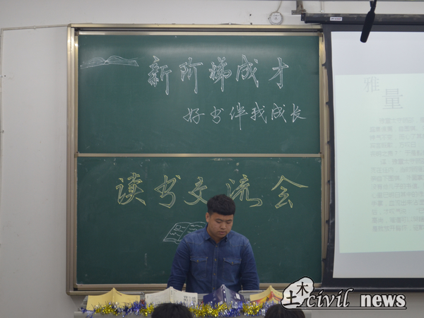 本次读书交流会分别邀请了土木八大组织解读《世说新语》。经过前期的阅读,八大组织派出代表在本次交流会上分享对《世说新语》的读书体会。“书中自有黄金屋,书中自有颜如玉。当我们读的书越多,书籍就使我们和世界越接近,生活对我们也变得越加阳光和有意义。”在主持人简短的开场白后,读书交流会正式开始。