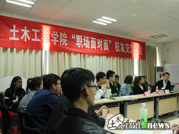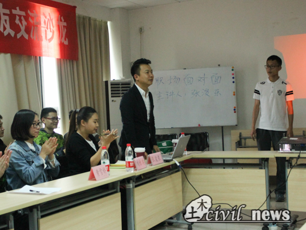 四月二十七日下午四时许,土木学院“职场面对面”员工交流沙龙在4229教室顺利举行。本次主讲嘉宾是土木学院2003级毕业生张浚东,本次沙龙由土木学院就业指导中心承办,并由黄雪娇老师主持。
