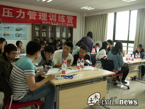 5月7日上午8:45,由jn江南老员工学业与发展指导中心承办的“压力管理训练营”在X4229正式开营.本次训练营旨在给土木本科生提供一个降压缓压的平台,以疏导他们在平时学习工作中形成的压迫感。土木学院分团委书记、13级辅导员刘萍担任本次训练营的指导老师。