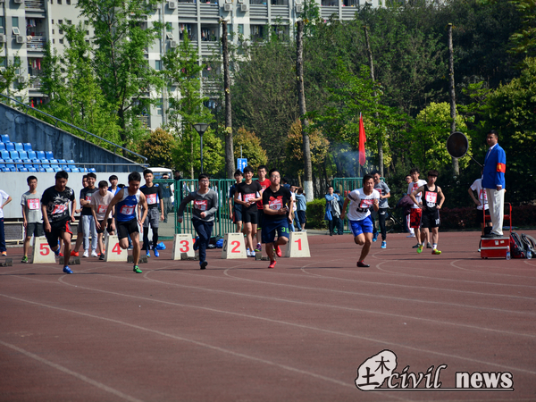 九点半左右,员工甲组男子50米比赛开始了。在火红的赛道上,他们眼神紧紧盯着前方,挥臂迈腿,引发了观众席上呐喊与欢呼的热浪。裁判组的同学、老师们都认真地盯着终点线,不敢放松,以保证比赛的公允与裁断的准确。土木学院的樊浩田、黄文峰、卢剑波都在各自小组取得了第二名的好成绩;李雨轩与王兴平同学也在小组比赛中表现抢眼。