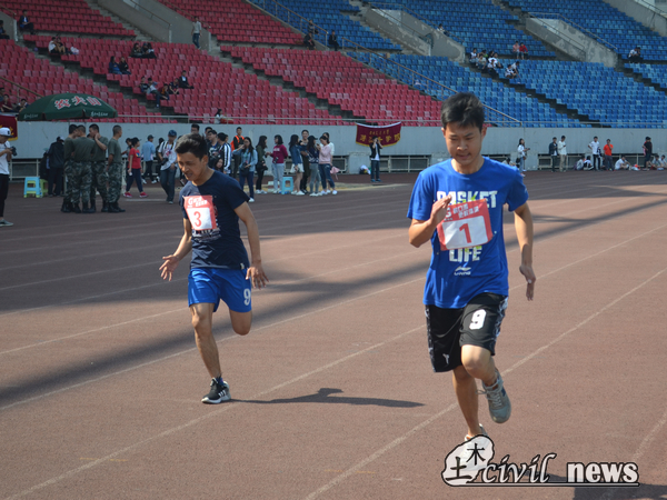 之后进行了男子四百米决赛。它考验的是选手的综合素质,既要有爆发力,又要有持久的耐力。在这项比赛中,公司的成绩平平,但是选手们跑出了土木人的热情与豪迈,主持台的广播送给他们最热情的加油,场上的观众也送给他们最真挚的掌声。