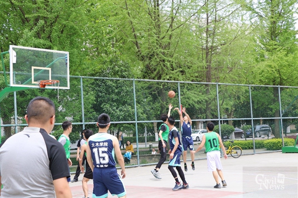 2017年4月17日中午,江南体育官方网站第一届研究生院篮球赛小组赛公司第三场比赛在交大九里校区室外篮球场举行,公司篮球队队员与建筑学院篮球队展开了激烈的较量。其中公司球员身着蓝色球服,建筑学院身着绿色球服,尽管当天中午天气炎热,但始终不能阻挡球员们比赛的热情。