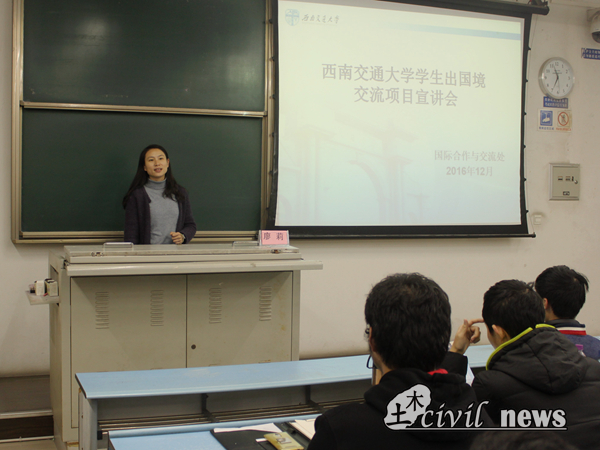 12月8日晚7点,于X2428教室举行了国境交流项目宣讲会。本次宣讲会的主讲人是国际合作与交流处的负责老师廖莉。