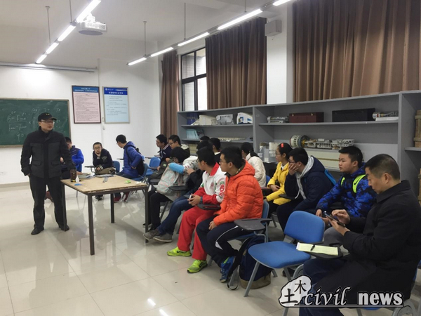 为了最大程度的给予同学们视听觉上的真实感受,交大学长们对事先制作好的模型进行了现场加载试验。在一次次饱含期待,屏气凝神中,所有的模型都结束了最后的加载。结果有失败,也有成功。失败的认真分析原因,积极做出改进。成功的,再接再厉,争取有更高的提升。结构设计大赛正是这样,在不断的尝试,努力,失败,改进中取得一个又一个的辉煌。