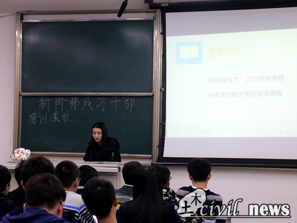11月8日晚七点,在二教X2419和X2427教室同时举办了新阶梯成才干部培训的第一课——“大学班团干部职责与实务”。本次培训的讲师是辅导员王若羽老师和张素子老师。记者有幸来到X2427教室,该教室的负责人是张素子老师。张老师从班团干部的职责、工作中遇到的问题和解决问题的方法等多个方面讲解,让班团干部学会提高工作能力的方法。