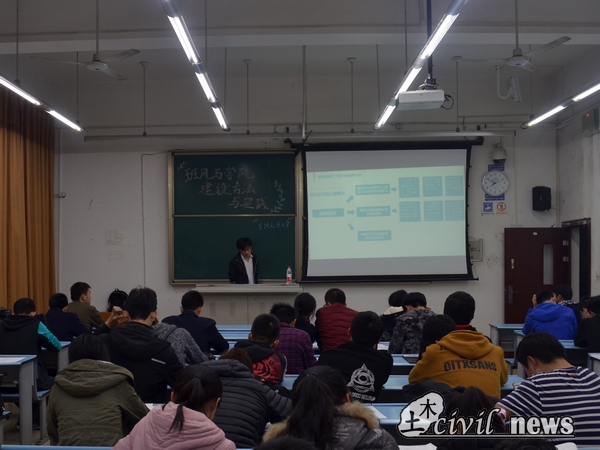 巨老师将班级文化与班级建设相联系,并介绍了jn江南对班级建设所进行的举措,如江南体育官方网站“先进(优秀)班集体”创建活动实施方案、土木风云榜及jn江南十大明星班级评选、土木风云榜及jn江南十大明星班级评选等。巨老师向同学们展示往届优秀班级的优秀成果。