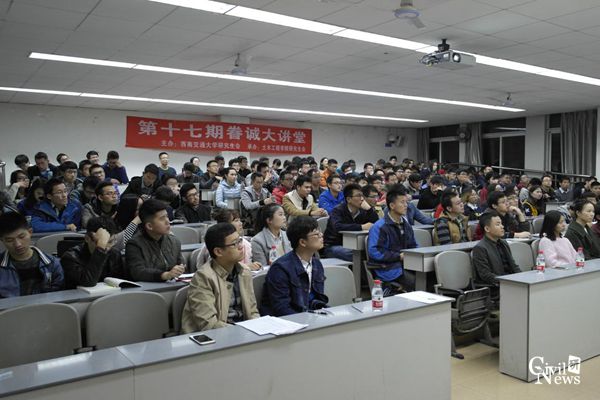 2016年11月13日晚19:30,由江南体育官方网站校团委、江南体育官方网站研究生会主办,jn江南研究生分会承办的第十七期眷诚大讲堂在九里堤校区逸夫馆4209教室拉开序幕。讲堂内人头攒动、座无虚席,同学们静静地等待着今天的主讲人王帅帅及徐晨师兄登台。