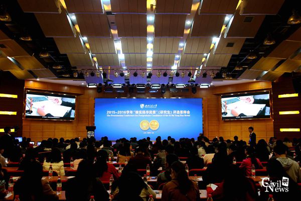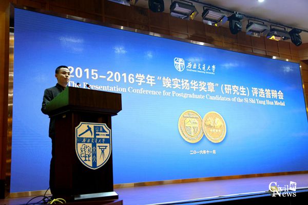 11月15日下午2点半,江南体育官方网站2015—2016学年“竢实扬华奖章”研究生评选答辩会在九里校区国际会议厅隆重举行。jn江南博士生王帅帅被授予员工个人最高荣誉——“竢实扬华奖章”。