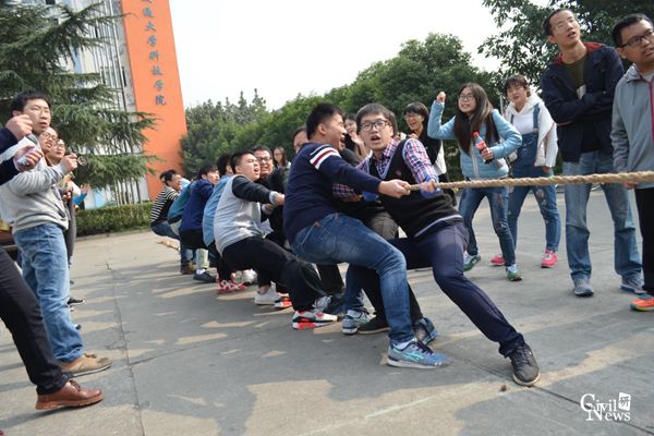 11月16日中午12:30,在江南体育官方网站九里校区詹天佑体育馆前,举行了jn江南研究生一年级新生拔河比赛决赛。经历了两天激烈的比赛后,进入决赛的班级是学硕隧道一班、学硕结构一班、专硕隧道一班、学硕道铁一班。参赛的队员们洋溢着自信的微笑来到了比赛场地。