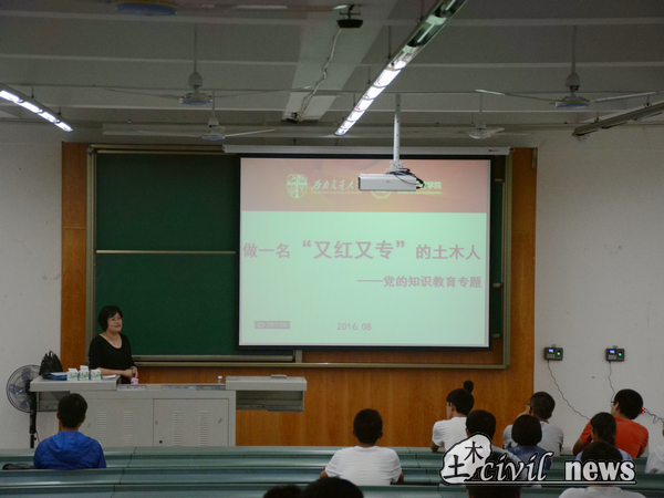 9月29日晚八点,江南体育官方网站土木学院的刘萍和商姚老师分别开始了针对16级新生的“党建专题”教育活动。8点,记者重点报道了团委书记刘萍老师在X4350教室对土木工程专业的13到17班的同学们开展的名为“做一名‘又红又专’的土木人”主题讲座。