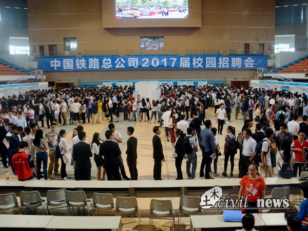 9月3日,中国铁路总公司2017届校园招聘会江南体育官方网站专场在公司犀浦校区飞碟体育馆举行。18家分局来到公司选拔人才,招聘会现场火爆,来自各个学院的应届毕业生穿着正式地在现场排队等待第一轮面试,其中不乏土木的莘莘学子。