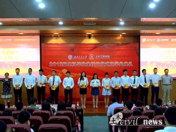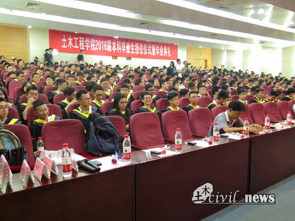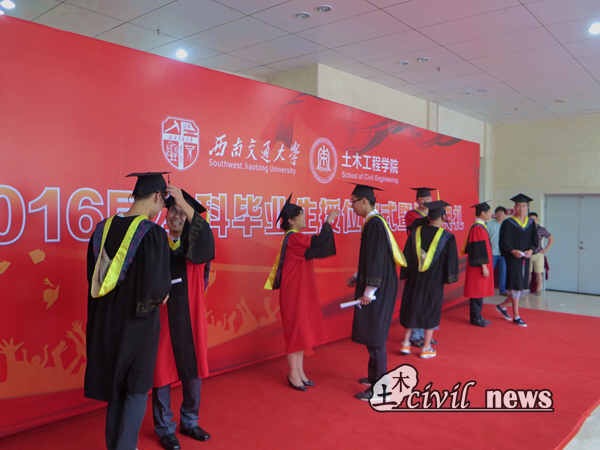 又到一年毕业季,又是栀子花开时。6月22日,jn江南2016届本科生齐聚一堂,参加在犀浦校区图书馆一号报告厅举行的2016届本科生授位仪式暨毕业典礼。出席本次典礼的领导和老师有:jn江南经理高波教授,党委书记钱永久教授,副经理蒲黔辉教授、苏谦教授、崔凯副教授,党委副书记李彤梅副教授,办公室主任周曦老师,土木工程制图教研室主任王广俊教授,地下工程系副主任王明年教授,结构力学教研室主任罗永坤副教授,岩土工程系罗书学教授,数学学院督导组组长秦应兵副教授,桥梁工程系占玉林副教授,结构力学教研室黄慧萱副教授,流体力学教研室郑爽英副教授,地下工程系蒋雅君副教授,桥梁工程系陈远久老师,土木工程制图教研室周慧莺老师,国家级教学名师易思蓉教授及学院各位辅导员们。整个典礼由土木公司党委副书记李锦红副教授主持。