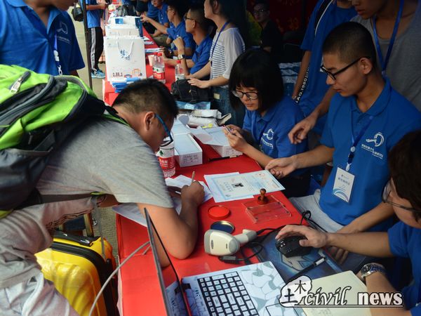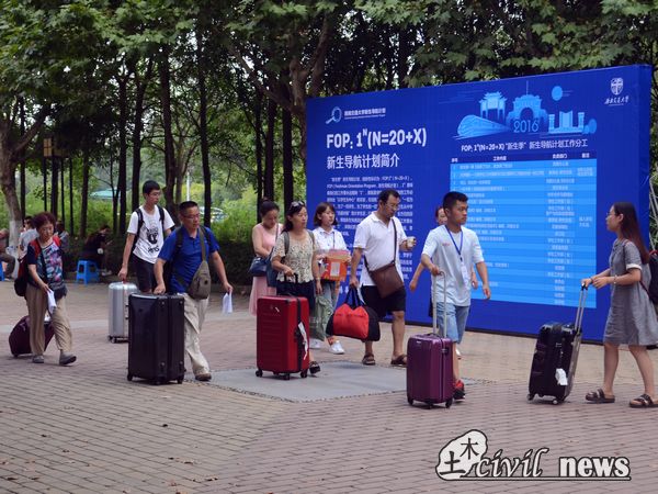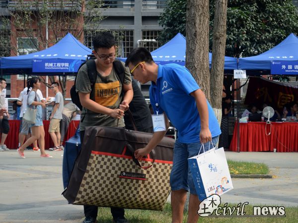 下午,报道的新生数量依旧不减。在这一波又一波的新生潮中,土木迎新点前出现了许飞董事长和陈志坚副书记等的身影。徐董事长和李锦红书记一起查看了土木迎新工作的进展,并在土木迎新点处逗留了许久。许飞董事长在和李书记的谈话中提到,今年迎新的任务艰巨,土木专业一共要招1000人左右;同时峨眉校区的迎新工作要和犀浦一视同仁,甚至还要更重视峨眉方面的工作。