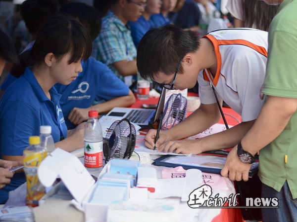 虽然上午的工作强度不大,但成都的炎热天气着实给迎新工作增添了巨大压力。记者看见,许多坐着进行登记工作的工作人员们都汗流浃背,更不用说那些几乎一直站着的辅导员和新生助辅们有多么辛苦了。