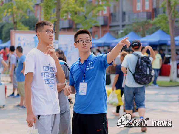 8月24日是土木学院迎新工作的第二天。虽然前一天工作人员们一直辛勤工作直至夜深,但今天他们还是于七点三十分准时到达迎新点,着手整理迎新点各项设施,为迎新工作最重要的一天做好最充分准备。参与第二日迎新工作的成员们主要有辅导员、各班助辅、各党支部所组成的党员服务队及来自团建中心的志愿者们。