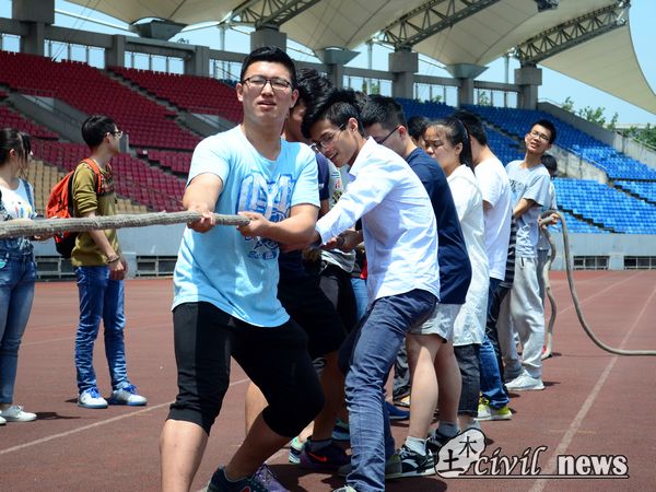 而接下来的比赛尤为激烈,大家纷纷使出全身力气向后用力拉绳子,有些班级甚至还有外国友人助阵,值得一提的是,2014级17班每场比赛均在短暂的时间内将对手打败,大家佩服不已,17班成为拔河比赛决赛最后的赢家,并取得决赛的一等奖,而2013级16班、2014级1班以优异的成绩取得决赛二等奖,2015级1班、2015级14班、2013级1班获得三等奖。