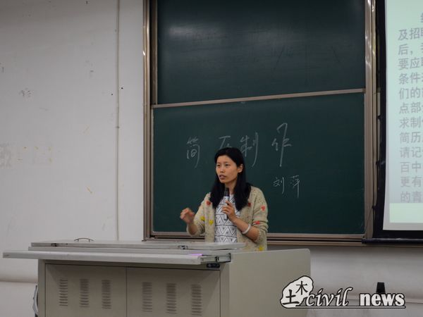 讲座开始时,刘萍老师便向同学们交代了近年来交大土木应届毕业生约70%本科就业率的高比例数据,并借此说明读研并非是土木员工唯一的最佳出路。“毕业后直接工作,将继续成为大部分土木本科员工的选择,所以如何写好一份求职简历就显得十分重要了。”刘萍老师分析道。
