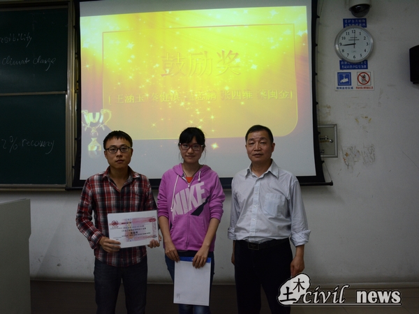 5月13日,2012级茅以升学院土木1、2班关于《环境工程基础》课程设计竞赛的颁奖典礼在X2427隆重举行。参加本次颁奖典礼的嘉宾有工学博士、博士生导师杨顺生教授,本科办创新办公室主任梁老师以及资助本次竞赛的企业代表吴高工。同时,跟随杨老师而来的两位德国职工也参加了此次颁奖典礼。