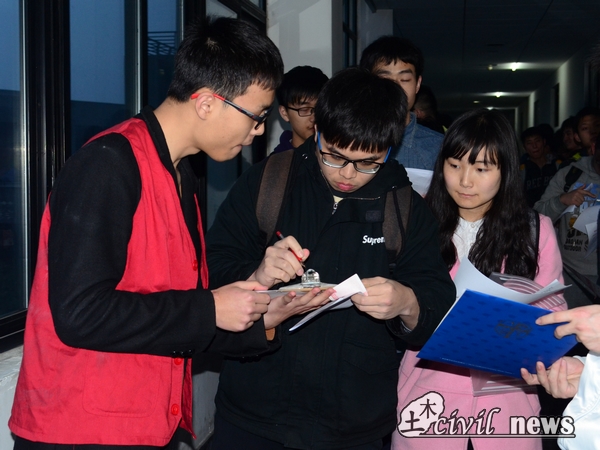 此次竞赛分为了建筑工程,桥梁承重,桥梁景观和造型,岩土工程,铁道工程,道路工程共五个项目。作为打响土木科技月的第一场战争,此次比赛被寄予了厚望,报名人数火爆。在土木科创中心的志愿者们有条不紊的指挥下,同学们排为两列进行了对自己报名事宜的填写。而志愿者们引导着参赛者到指定地点填写信息并将信息表交至了信息录入区。