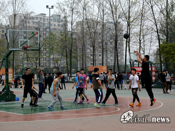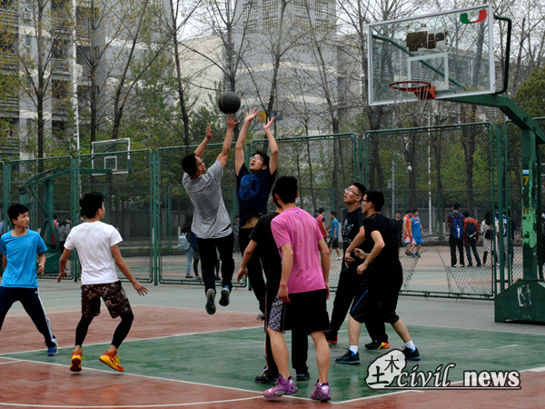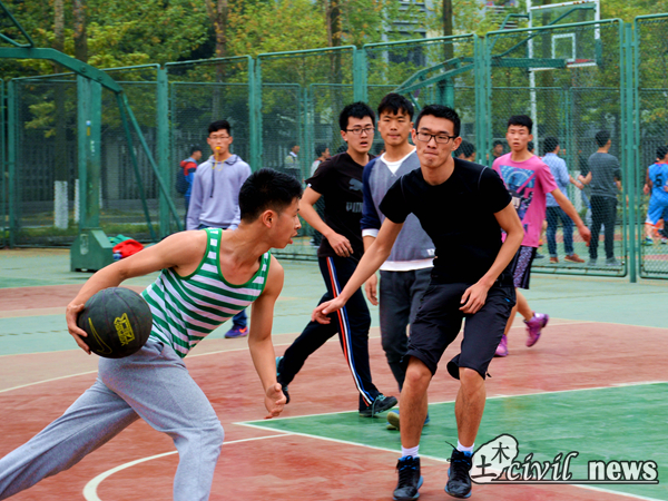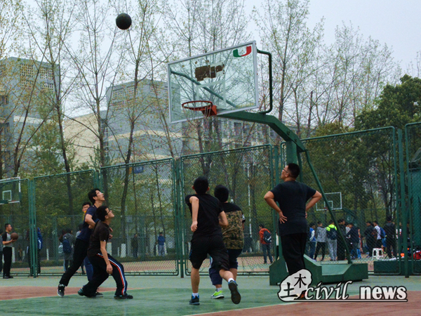 4月1日12点15分,离比赛开始还有15分钟,双方主力队员均已到场,开始试赛。新闻中心的领队是办公室部长张靖,他说:“新闻中心对本次比赛十分重视,学业中心的同学们很强,但我们绝不示弱。”学业中心篮球队长是宣传部部长吴天舒。