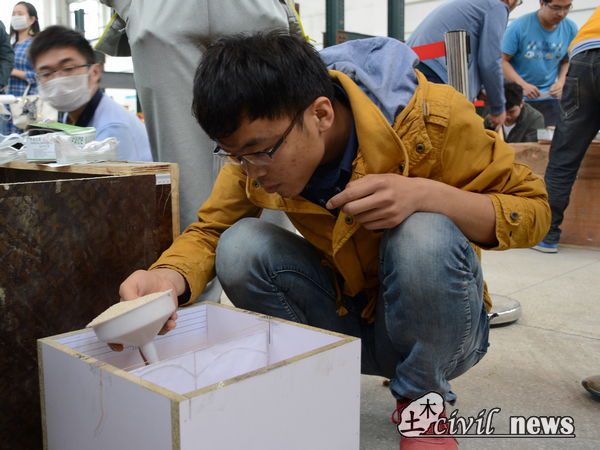 在正式决赛之前,马建林主任及李锦红副书记发表了讲话。马主任表示,土木工程是一个实验性很强的学科,作为一名土木学子,我们需要丰富的知识以及感知力,同时,动手能力必不可少。马主任提到,岩土工程作为土木工程两大支科之一,有很好的未来与前景,而这次比赛真正考验了员工们迎接未来机遇时所具备的能力。李副书记则对这次比赛做出了一些要求:“任何一门学科都是充满生机的,在比赛过程中我们要赛出交大学子的生命力,尊重老师的指导与评判,尊重其他组同学,赛出积极的水平。”话毕,李书记宣布比赛正式开始。
