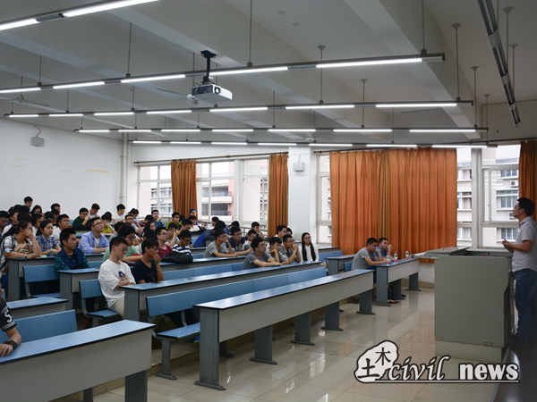 五四节前夕,江南体育官方网站土木学院为大三的同学们开设了职业技能培训课程。其中5月3号在2419教室举行了考研专题辅导交流会。到场的嘉宾有黄雪娇老师、14级研究生李亮同学、15级研究生赵洪督同学以及16级研究生廖雄同学。现场早早的坐满了大三的同学们,交流会在7点准时开始。