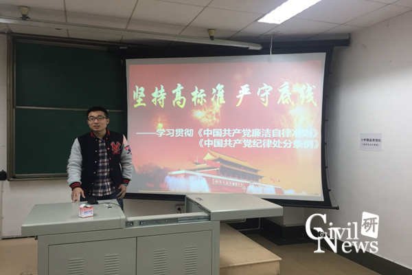 为深入贯彻西交公司党〔2015〕87号文件精神,12月17日晚7时,2015级专硕岩土1班党支部在九里校区逸夫馆4304B教室召开了主题为“读懂《准则》和《条例》,增强党章党规党纪意识”的主题生活会,会议由党支部书记陈拔进主持。