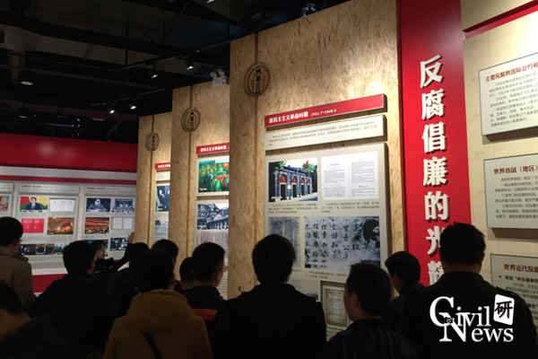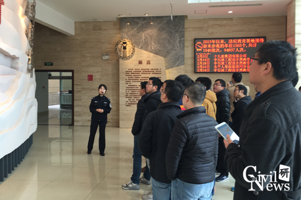 在以“人生之旅、与廉同行”为主题的法纪教育实物与图片展厅,各位博士生认真倾听讲解人员的详细讲解,仔细观看图片、实物、音像资料及监区实时监控图像,观看了纪检监察发展历程和各类案件案例剖析图片展,听取了职务犯罪服刑人员现身说法。历史视野、世界视野认识反腐败工作的重要性、紧迫性,从一个个反面典型案例剖析心理失衡、信仰缺失、贪欲膨胀、交友不慎等导致官员贪污腐败的原因,也从各个历史时期党的正面先进人物事迹中感受到模范榜样力量。