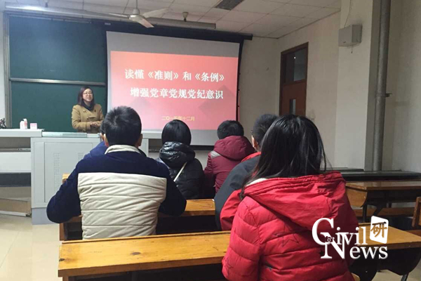 2015年12月14号,在党支书李娟的主持下,2013级硕士道铁1班党支部在九里校区逸夫馆4419教室召开党支部会议。 此次会议针对jn江南“讲党性、守党规、严党纪”学习工作以及预备党员转正两项工作召开。