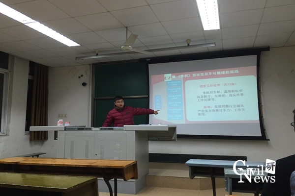 首先,党支部组织委员周川滨为支部党员传达了学习《准则》和《条例》的重要指示,并通过相关资料为支部党员详细介绍修订后《准则》和《条例》的亮点和创新点。并针对其中几条重点关注的规定做出正确解读。
