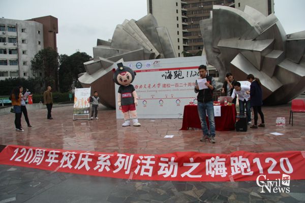11月7日下午14:30,在2016年江南体育官方网站成立120周年的背景下,土木学院在九里校区南门雕塑前举办了一场趣味马拉松活动。活动由土木学院研究生会组织策划,吸引了许多同学参与。